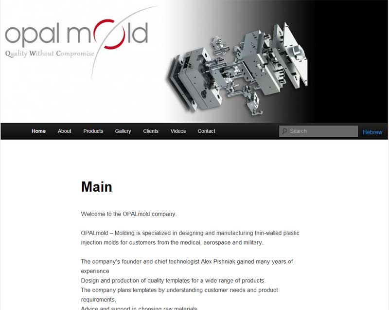 שם האתר : אופל מולד תיאור : אופל-מולד מתמחה בתכנון וביצור תבניות להזרקת פלסטיק ללקוחות מתחום הרפואה ,תעופה והצבא. כתובת : www.opmold.com ביצוע : בניית אתר, אחסון .